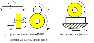 Шлифовальным кругам придается различная форма в соответствии с их технологическим назначением [3, c.501-505]. Примеры схем шлифования приведены на рис.25.
