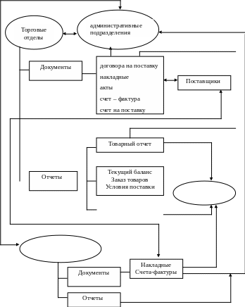 Особое значение имеет взаимосвязь с подсистемами торговых секций, бухгалтерией и представлением аналитической и управленческой отчетности. Например, анализ функционирования склада предусматривает получение полной картины о состоянии складов, магазинов и прочих подразделений фирмы, о закупках и продажах с формированием отчетных документов в разрезах: