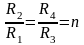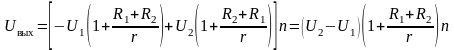 В данной схеме входные напряжения подаются на два входа ОУ. Найдем, при каких соотношениях резисторов данная схема превращается в дифференциальный усилитель.