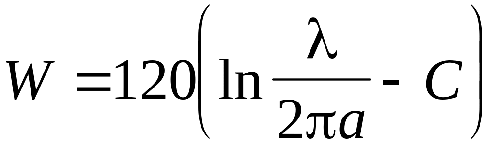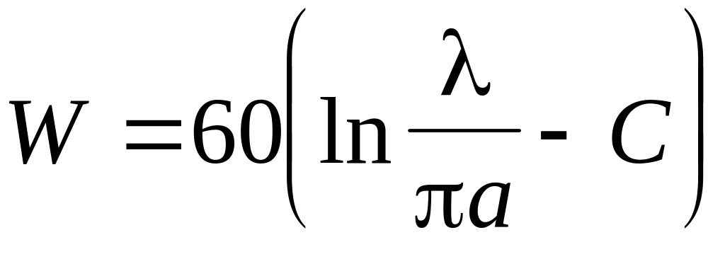 3. В случае, если длина антенны сравнима или больше длины рабочей волны, вычисление активной и реактивной составляющих входного сопротивления вибраторов следует вести по формулам: