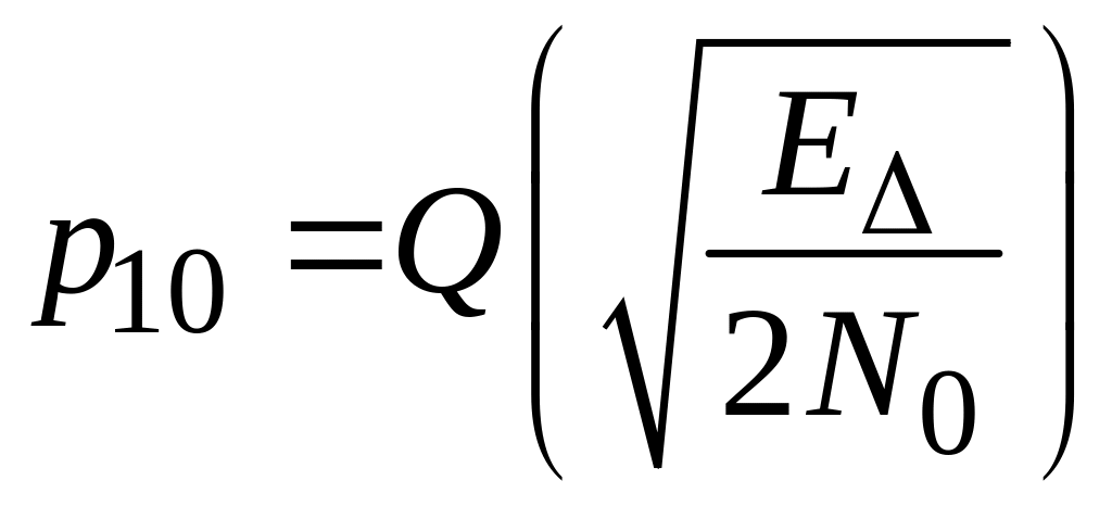 рівна середньої ймовірності помилки при когерентному прийомі сигналів на фоні білого шуму, визначається енергією різницевого сигналу і спектральною щільністю потужності шуму.
