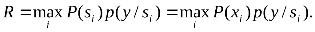 Як було зазначено, рішення зазвичай виноситься на користь сигналу, що має найбільшу апостеріорну ймовірність. Так як знаменник не залежить від номера I, то вирішальне правило (алгоритм рішення) визначається так: