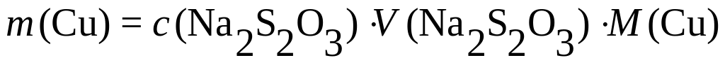 Иод, выделившийся в количестве, эквивалентном количеству меди, оттитровывают стандартным раствором тиосульфата в присутствии крахмала в качестве индикатора. КТТ определяют по обесцвечиванию раствора иодкрахмального комплекса.