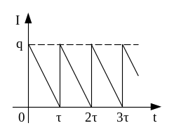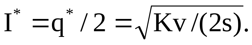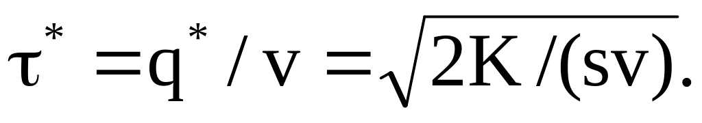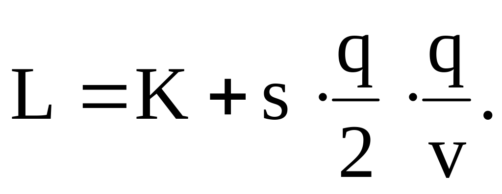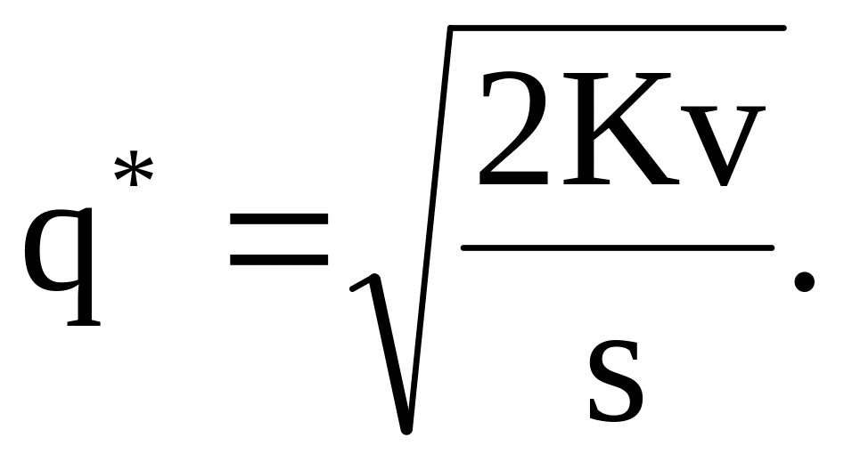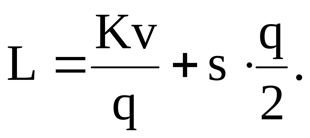 Пусть τ – интервал времени между поставками. Очевидно τ = q/v. Так как расходование запаса происходит с постоянной интенсивностью v, то средний уровень запаса за интервал τ равен q/2, а общие затраты, связанные с хранением и заказом товара, равны