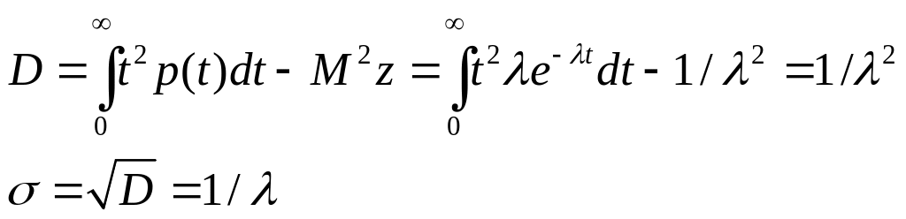 Полученное совпадение величин M и σ характерно для показательного распределения. Это свойство на практике используют как критерий для первоначальной проверки соответствия гипотезы о показательном распределении полученным статистическим данным.