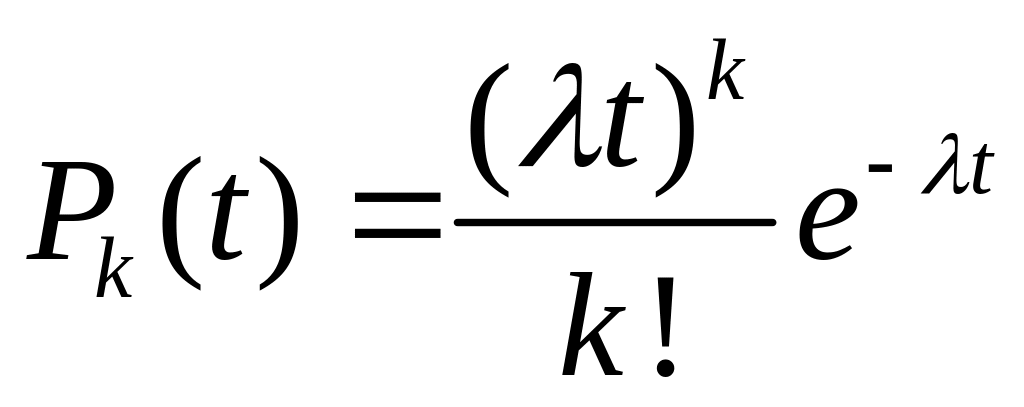 Вероятность поступления k требований за промежуток времени t в пуассоновском потоке определяется из выражения
