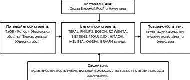 Товарами-субститутами для продукції ТзОВ є мультифункціональні кухонні комбайни та блендери вітчизняного і закордонного виробництва середньої цінової категорії.