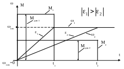 Якщо зазор повністю розімкнено (найгірший випадок), то при реактивному статичному моменті Мс2 друга маса залишається нерухомою, а перша маса стрімко набирає швидкість під дією моменту двигуна (Мс10, М12=0)