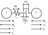 Розрахункова схема представлена на рис.1.33. В даному випадку пружний момент М12 та момент внутрішнього в’язкого тертя МВТ характеризуються нелінійною залежністю. Сумарний пружно-в’язкий момент визначається наступною формулою