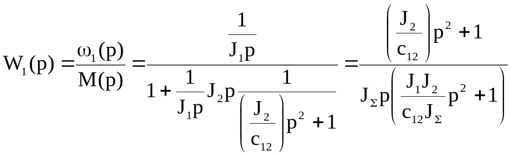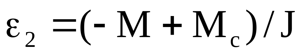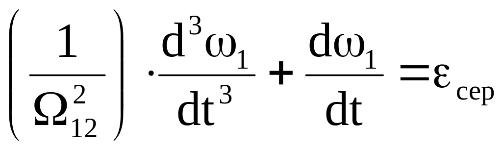 яке при діленні на сумарний момент інерції J з урахуванням того, що похідна за моментом дорівнює нулю, бо М1=const, приймає вигляд