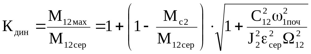 Згідно (1.129), якщо зазор до початку пуску було замкнено і 1поч=0 та Мс2=0, то Кдин=2, тобто пружний момент вдвічі збільшує навантаження. Якщо ж зазор розімкнено 1поч0, то перевантаження буде тим більше, чим більший момент інерції першої маси J1 та жорсткість с12. Таким чином, пружність зв’язку зменшує динамічні удари. При проектуванні ЕП та механізму потрібно забезпечити динамічний коефіцієнт, близький до Кдин=1, що дозволить збільшити надійність та довговічність механізму. В цілому динамічні коливання мас не впливають на тривалість перехідного процесу, але негативно позначаються на виконанні технологічних операцій, особливо на точності роботи.