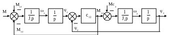 Структурна схема реалізує реально існуючий у природі сумарний пружно-в’язкий момент Мпв=М12+Мвт. Якщо для аналізу потрібно окремо виділити пружний момент М12 та момент в’язкого тертя Мвт, то структурна схема представляється згідно рис.1.29.