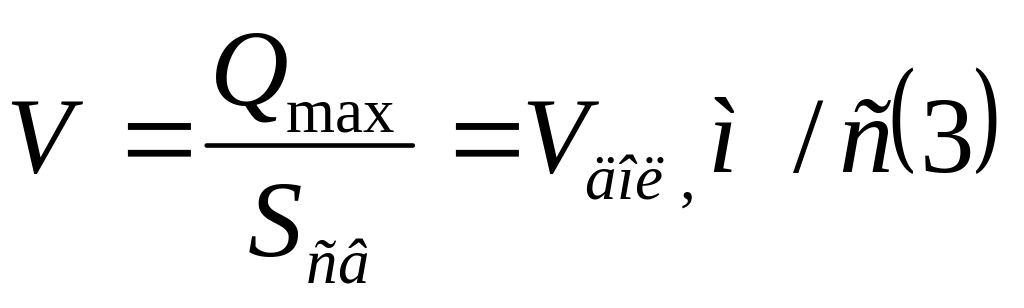 Qmax = Sоч ·Vmas · kоз, м3/с (2)