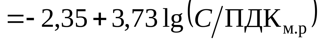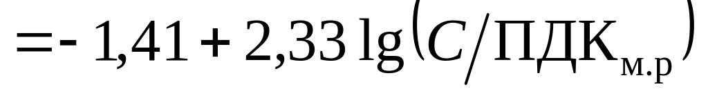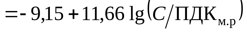 В зависимости от качества атмосферного воздуха определение вероятности проявления немедленных (рефлекторных) токсических эффектов основано на оценке кратности превышения концентрации вещества, вызывающего токсический эффект, значению его максимальных разовых ПДК: