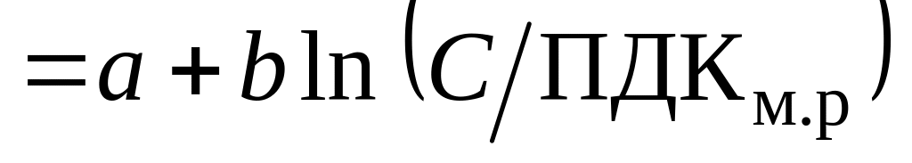 Численные значения регрессионных факторов а и b определяются в соответствии с классом опасности вещества: