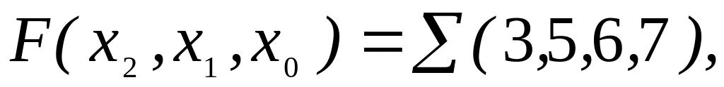 Числовой способ задания функций используется для сокращения ее записи, при этом переключательная функция записывается в виде логической суммы десятичных номеров двоичных наборов, на которых функция равна единице (в виде десятичных номеров конституент единицы), например, для функции, заданной табл. 1.2,