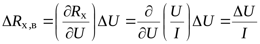 Воспользуемся формулой (1.45) и найдем выражение для частных погрешностей – составляющих погрешностей результата косвенного измерения сопротивления, вызванных погрешностями вольтметра: