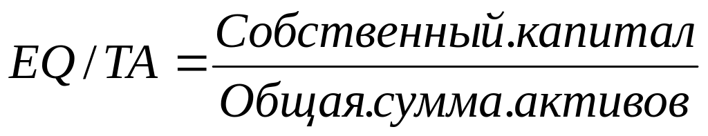 Ка=Ис/В, где Ис - собственные средства, В - валюта баланса |