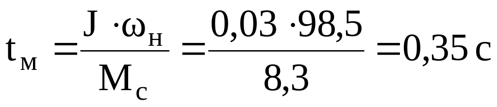 Вычисляем продолжительность разбега и остановки электродвигателя: