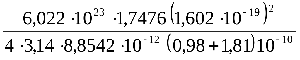 Воспользуемся приведенными уравнениями для оценки энергии решетки NaCl, подставив численные значения. Формула Борна дает для энергии решетки