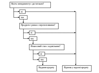 Кількісні критерії пов’язані з оцінкою поточного та перспективного фінансового стану позичальника, а якісні виявляються на основі оцінки менеджменту підприємства та його ситуації на ринку факторів виробництва і збуту продукції. Взаємозв’язок між кількісними та якісними параметрами кредитоспроможності підприємства зображено на рисунку 9.1.