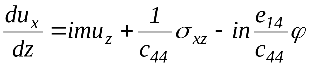 При неоднородности среды вдоль оси z, которая совмещена с осью симметрии кристалла, из системы уравнений выделяются производные по z и исключаются, не входящие в граничные условия компоненты тензора напряжений и электрического поля.