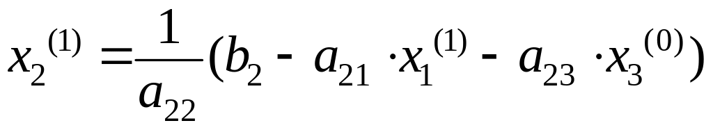 И, наконец, используя вычисленные значения x1 = x1(1) и x2 = x2(1), находим с помощью выражения (4.14) первое приближение для x3: