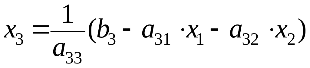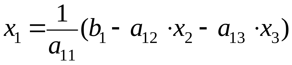 Предположим, что диагональные элементы a11, a22, a33 отличны от нуля. В противном случае нужно переставить уравнения. Выразим неизвестные x1, x2, x3 соответственно из первого, второго и третьего уравнений системы (1):