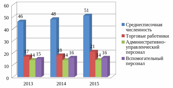 Обеспеченность ООО «Вернисаж» трудовыми ресурсами, за 2013–2015 гг.