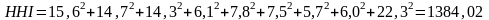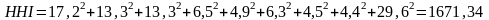 Для характеристики рыночной власти между всеми субъектами рынка рассчитаем индекс Херфиндаля – Хиршмана.
