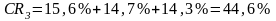 На основании данных о рыночных долях крупнейших компаний рассчитаем индекс концентрации по формуле, характеризующий долю трех крупнейших компаний в общем объеме стоимости выполненных работ в 2016 году и 2017 году. Индекс концентрации для 2016 года определен как: