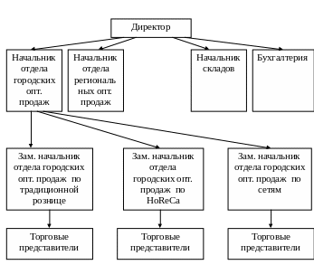 Для ООО «Лион» характерна линейно-функциональная организационная структура. Поскольку в данной структуре управления решения передаются по цепочке «сверху вниз», а сам руководитель нижнего звена управления подчинен руководителю более высокого над ним уровня, формируется своего рода иерархия руководителей организации [13].