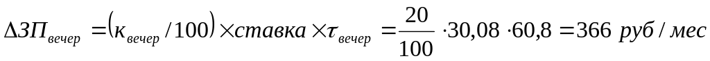 3) Доплата за работу во внеурочное время (вечернее и ночное время):