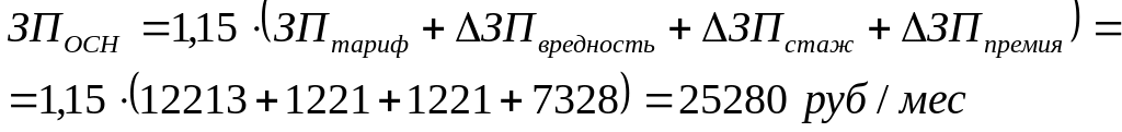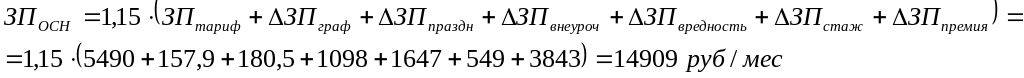 5) Основная заработная плата с учетом уральского коэффициента (15 %) составит: