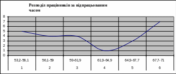 Рис.7. Розподіл працівників за відпрацьованим часом .