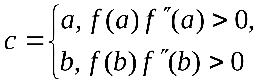 Зауваження: в якості вихідної точки слід вибирати той кінець відрізка [a,b] в якому функція має той самий знак, що і її друга похідна.