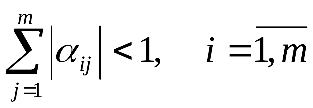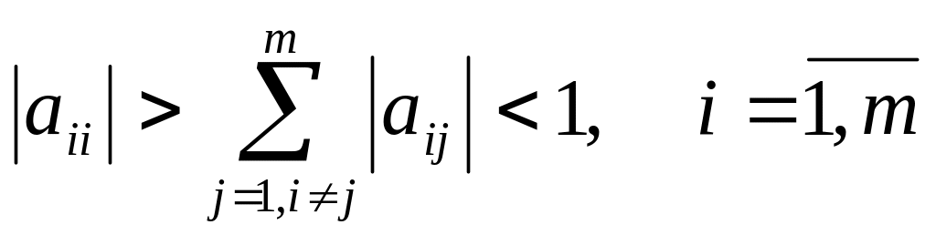 Твердження: Ітераційний метод буде збіжний, якщо матриці системи (1) всі діагональні елементи будуть більші за суму модулів усіх інших елементів відповідного рядка.