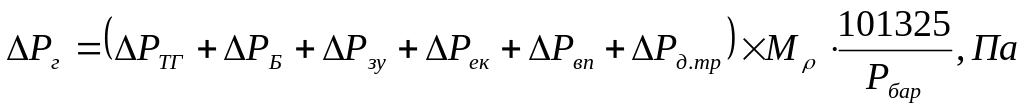 — сумарний газовий опір теплогенератора, який складається з опору поперечно-омиваємих труб, опору тертю в поздовжньо омиваємих пучках та опору поворотів газів всередині пучків або поза ними.