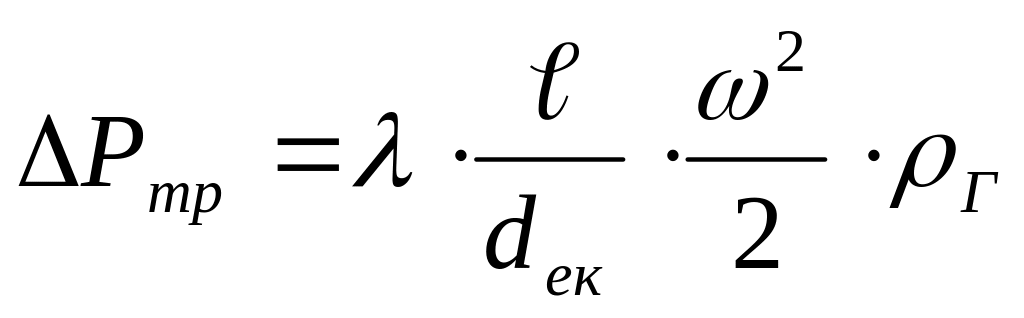 Газоходи мають, як правило, великий перетин і порівняно невелику довжину. Внаслідок цього відносна довжина l/dек і, отже, опір тертя в них незначний і загальний опір в них визначається в основному місцевими опорами. Тому при швидкостях газів, менше 25 м/с, опір тертя розраховується лише для одного-двух найбільш довгих ділянок постійного перетину, і отримана величина множитьс λ на відношення сумарної довжини газопроводу до довжини розрахованих ділянок. При ω ≤15 м/с і l ≤100 і коефіцієнт λ можна приймати для сталевих нефутерованих газопроводів рівним 0,02, для сталевих футерованих і цегляних при dек ≥0,9м, λ =0,03, при dек<0,9 м, м λ =0,04.