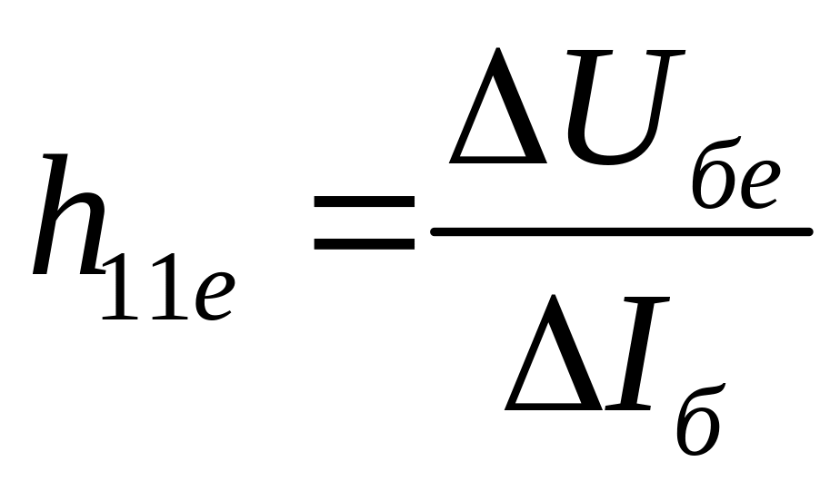 визначають по вхідних вольт-амперних характеристиках транзис-тора із трикутника АВС, де ΔUбе = АС, ΔІб = ВС;