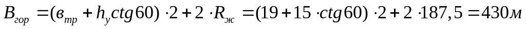 hп – висота рейкового шляху та баластового шару – 0,5 м;