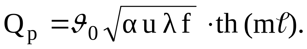 Эта формула не учитывает теплоотдачу торца ребра. Если принять, что коэффициент теплоотдачи на торце ребра такой же, как на его боковой поверхности, то теплоотдачу торца ребра можно учесть удлинением ребра на величину f/u и вместо длины ребра в расчетах использовать эффективную длину эф=+f/u. Тогда коэффициент эффективности ребра постоянного по длине произвольного поперечного сечения равен