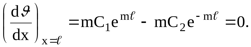 На торце ребра избыточная температура минимальна, и поверхность его часто меньше боковой поверхности ребра. Поэтому теплообменом с торца ребра часто можно пренебречь. В этом случае второе граничное условие запишется в виде