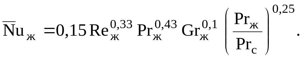 За определяющую температуру здесь взята средняя температура жидкости, о чем информирует индекс «ж». Индекс «с» в формуле говорит о том, что данный критерий рассчитывается по температуре стенки. В качестве определяющего размера выбран диаметр или эквивалентный диаметр.
