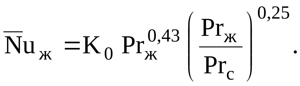 За определяющую температуру здесь взята средняя температура жидкости, о чем информирует индекс «ж». Индекс «с» в формуле говорит о том, что данный критерий рассчитывается по температуре стенки. В качестве определяющего размера выбран диаметр или эквивалентный диаметр. Величина К0 выбирается в зависимости от критерия Re из таблицы.