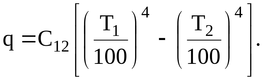 Если одно тело с поверхностью F1 окружено поверхностью F2 другого, то вся излучаемая центральным телом энергия падает на внешнее тело. Излучение же внешней поверхности только частично попадает на центральное тело, а остальная часть излучения снова попадает на ту же поверхность. Расчетная формула для потока теплоты в такой системе тел имеет вид