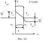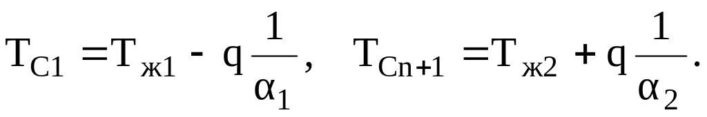Подставив найденное значение q в выше написанные равенства, определим температуры на поверхностях стенки ТC1 и ТC2. Величина