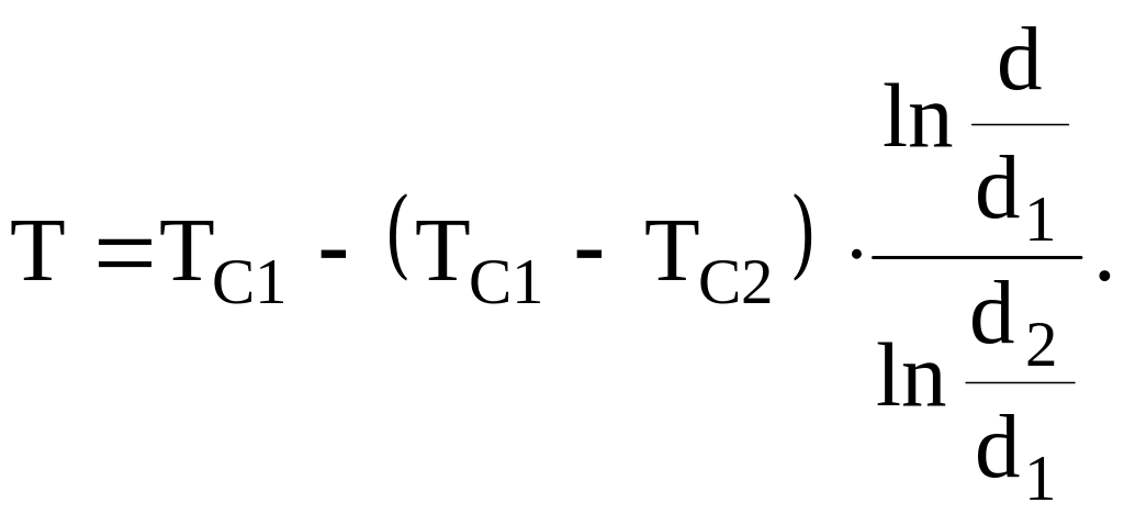 Если разделить переменные и проинтегрировать уравнение (3.39) в пределах от r=r1 до r и от T=TC1 до T и найти из полученного интеграла T, то получим следующее выражение для температурного поля