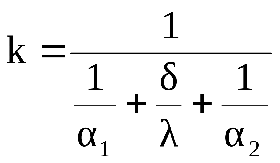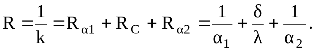 получила название коэффициента теплопередачи. Величина, обратная коэффициенту теплопередачи, называется термическим сопротивлением теплопередачи