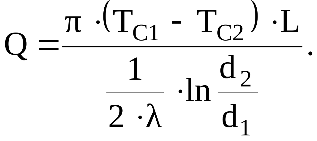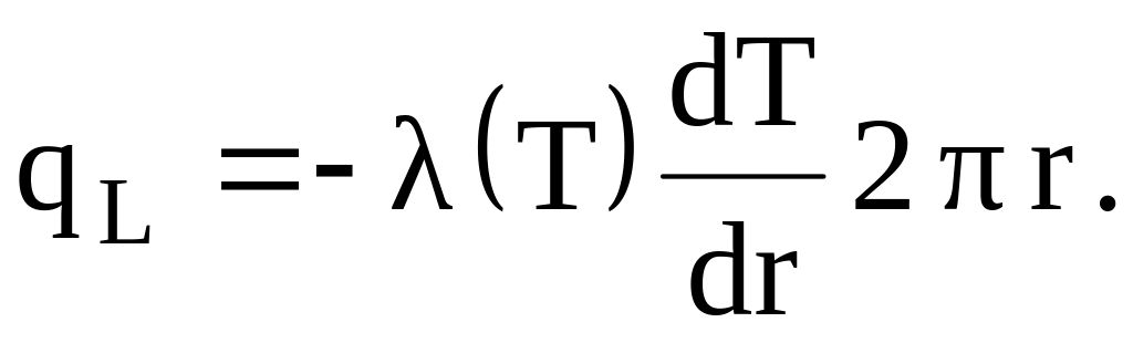 Подставляя в это уравнение соотношение (г) с учетом (е) и учитывая, что F=2rL, получим формулу для потока тепла через цилиндрическую стенку